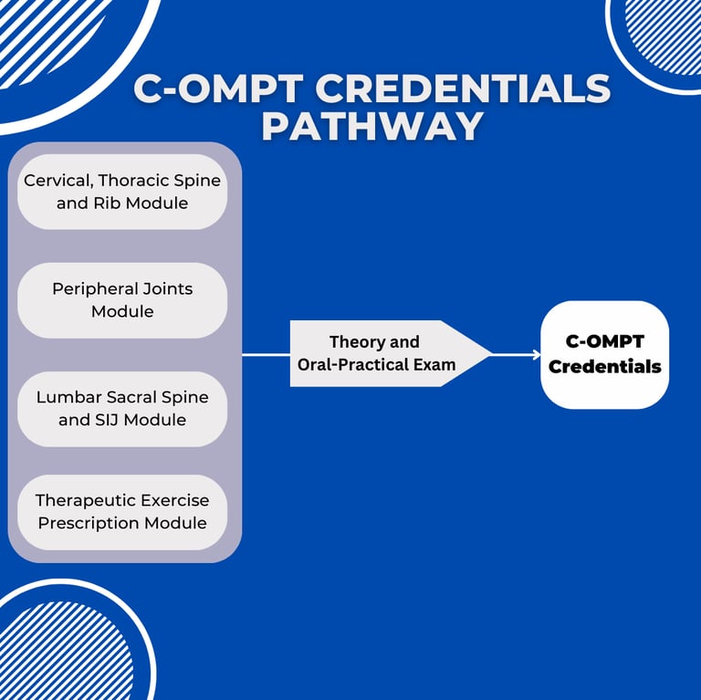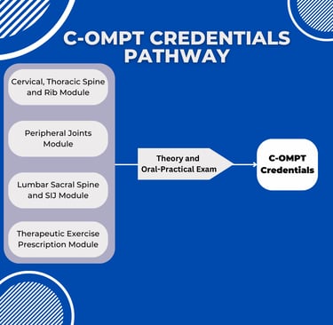 COMPT credentials prerequisites are open to all licensed Physical therapists only. Complete all 4 courses in any order. The COMPT Certification Examination is scheduled minimum once a year.